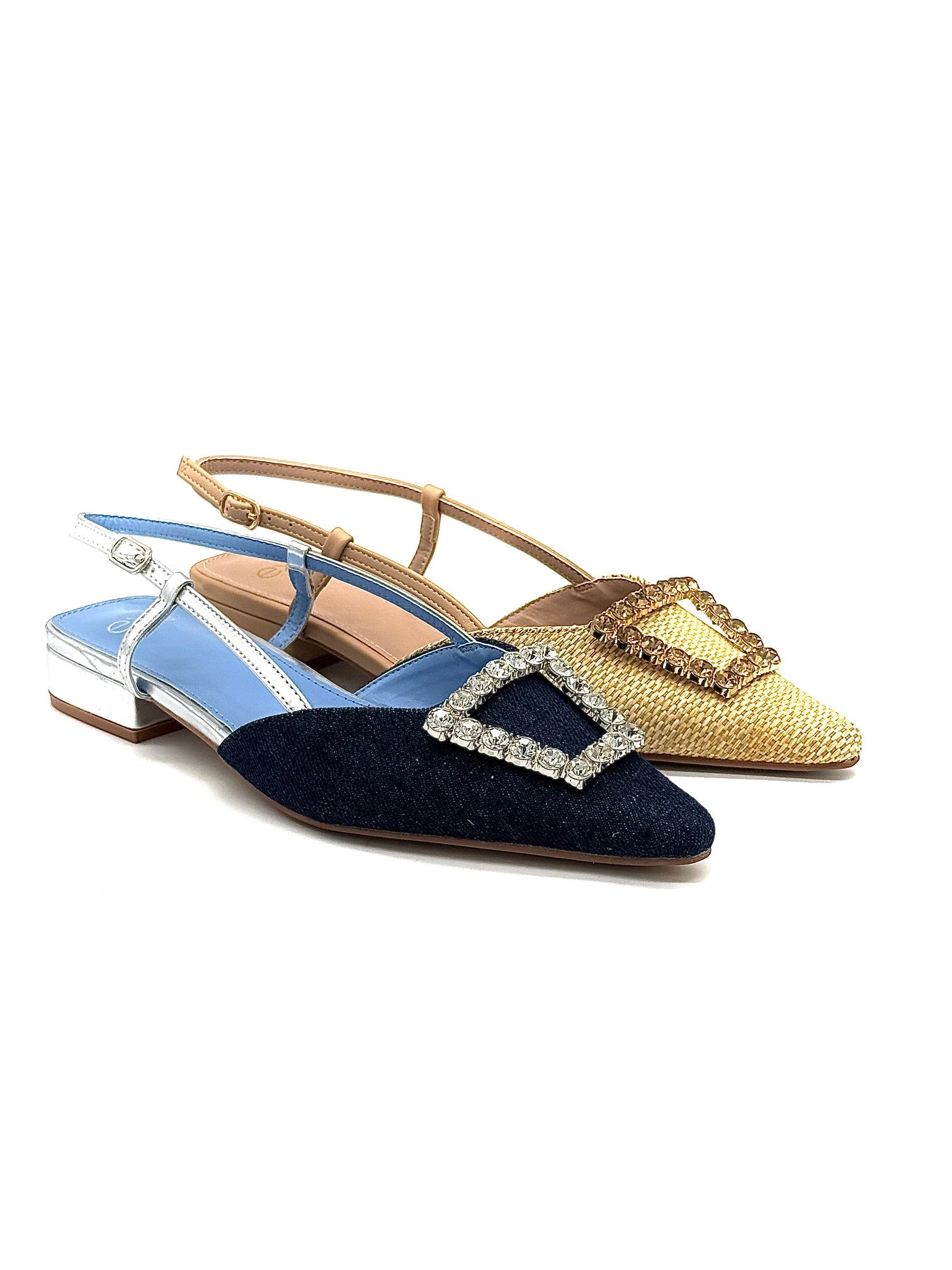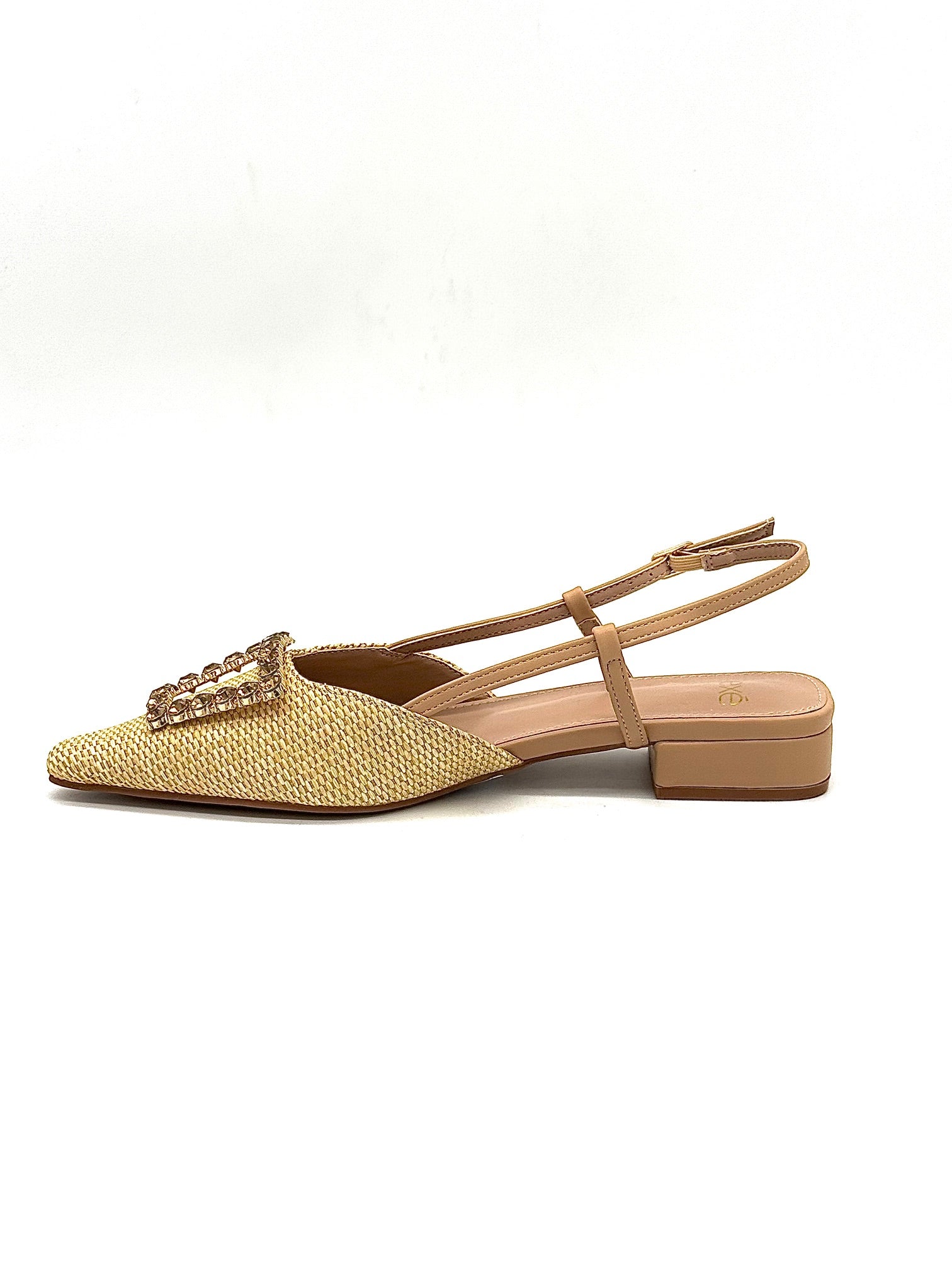 Introducing MILA, the epitome of elegance and luxury. Slip into these low heeled sandals featuring a stunning sparkle design in front and a secure strap in the back. Effortlessly elevate any outfit with these sophisticated and exclusive shoes.