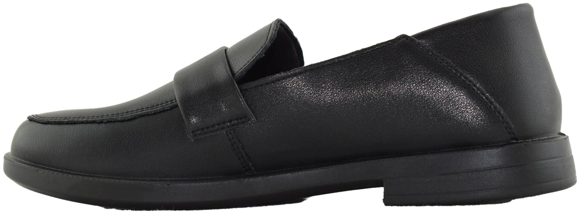 Black leather shoe with soft insole. Inner and outer are leather; bottom is rubber. Made in Spain.