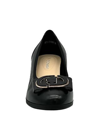 Leather Pump with buckle in front and soft insole. Inner and outer are leather. Bottom is rubber.