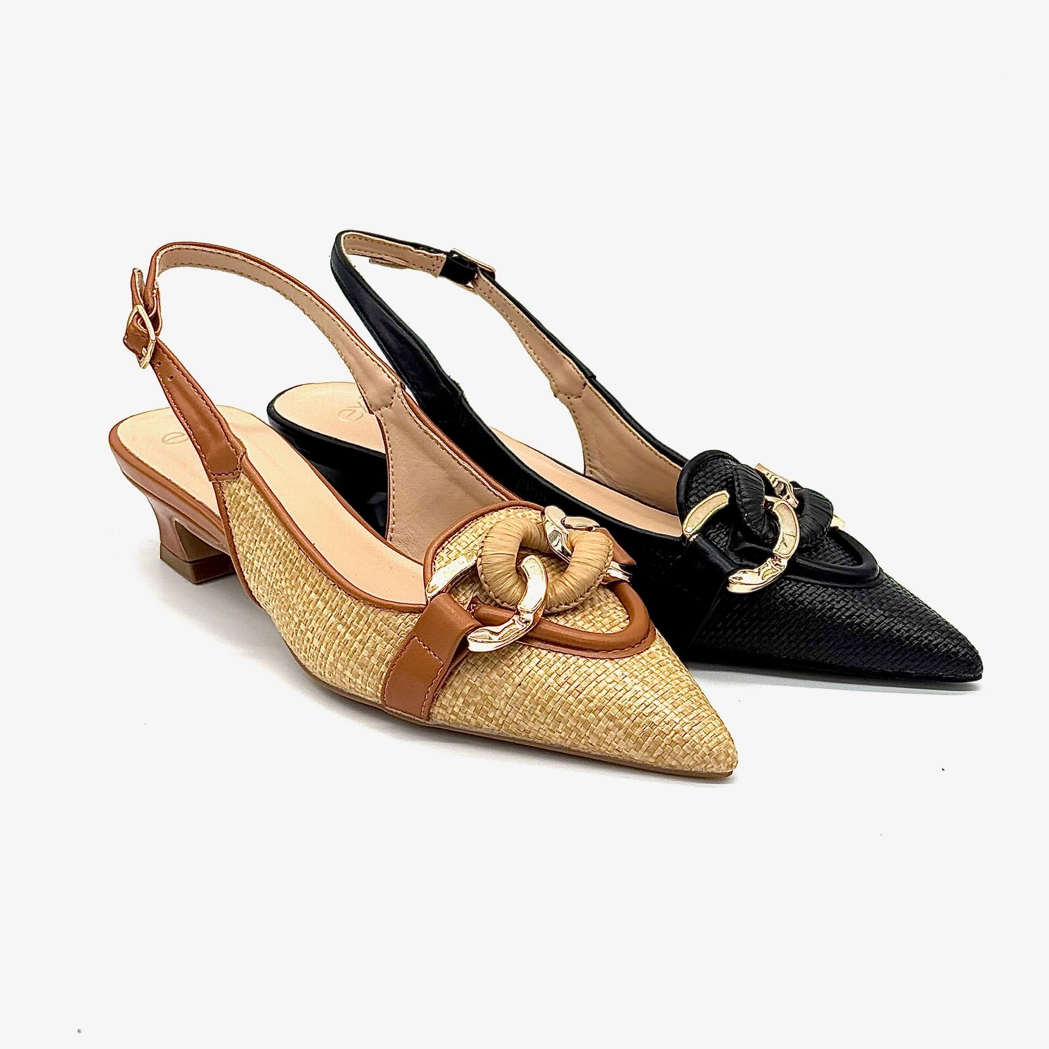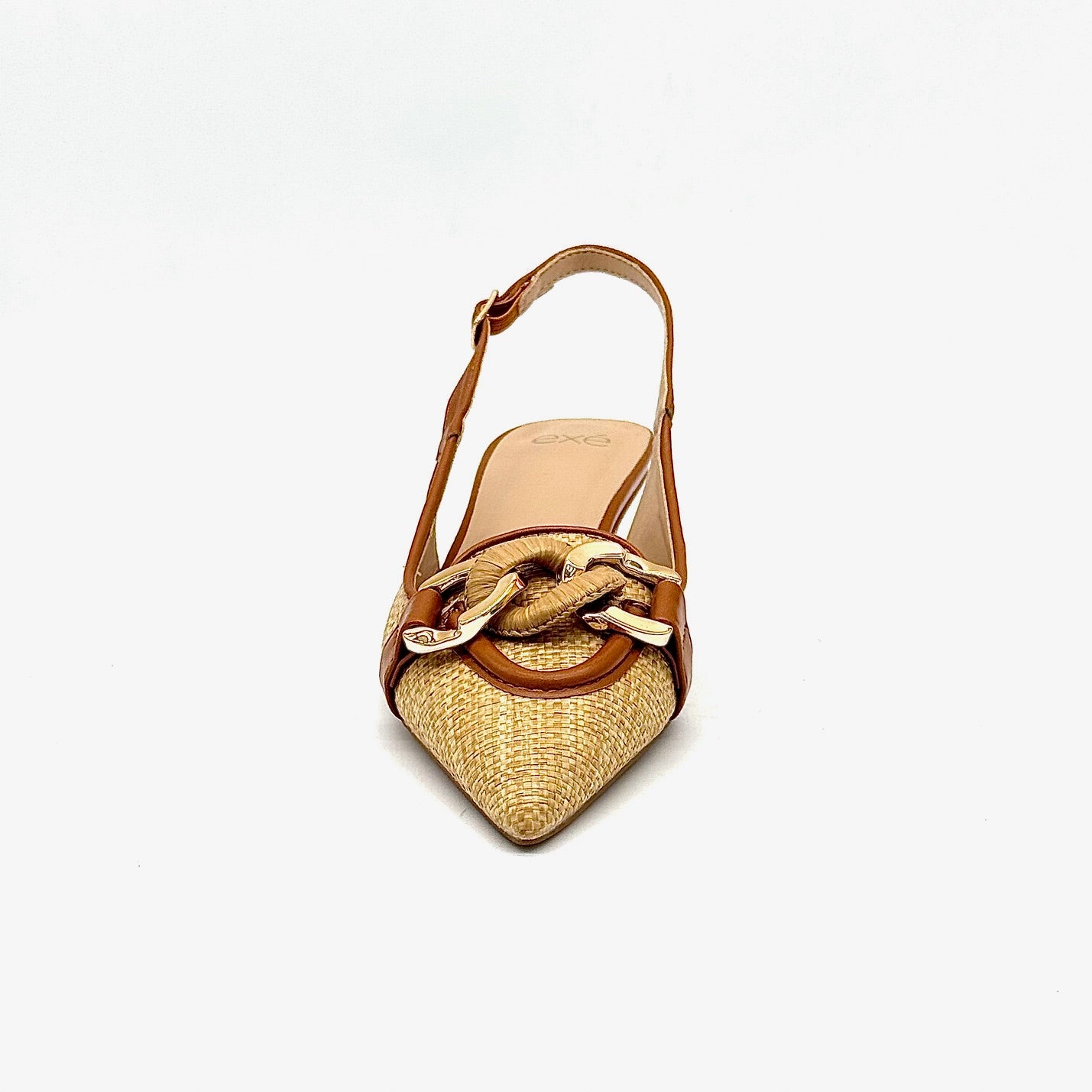 Discover the perfect balance of style and comfort with EXE (0475-12) HELEN. This conservative yet fashionable sling back features a low heel and padded sole for all-day comfort. Designed in Greece, this shoe offers both quality and elegance. Elevate your wardrobe with HELEN.