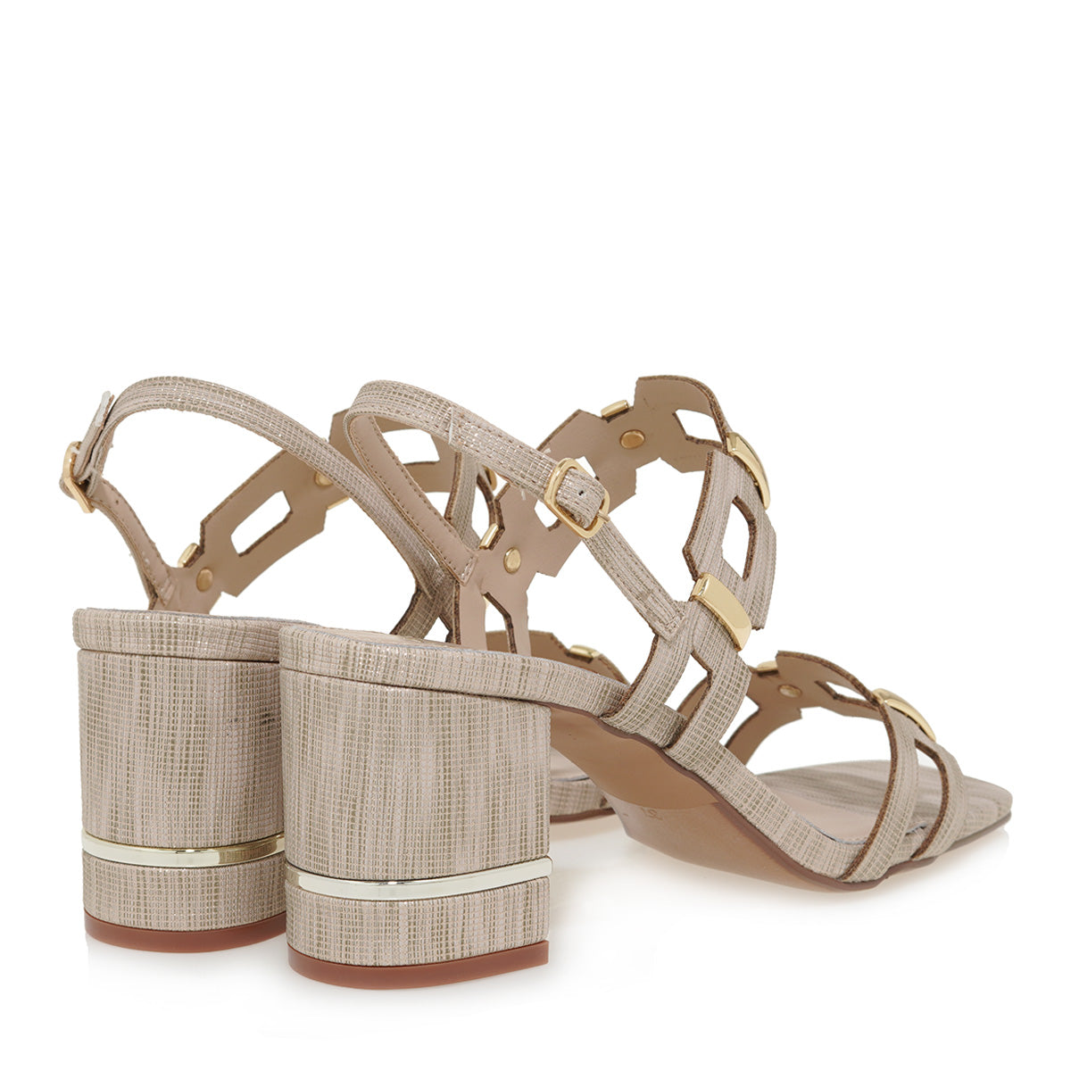Elevate your style with the EXE BRUNA-520 Heeled Sandal. Designed in Greece, this elegant sandal boasts a comfortable mid-height heel and soft insole for all-day wear. Perfect for any occasion, its sophisticated design adds a touch of luxury to your wardrobe. Step into the world of art and fashion with this exclusive piece.