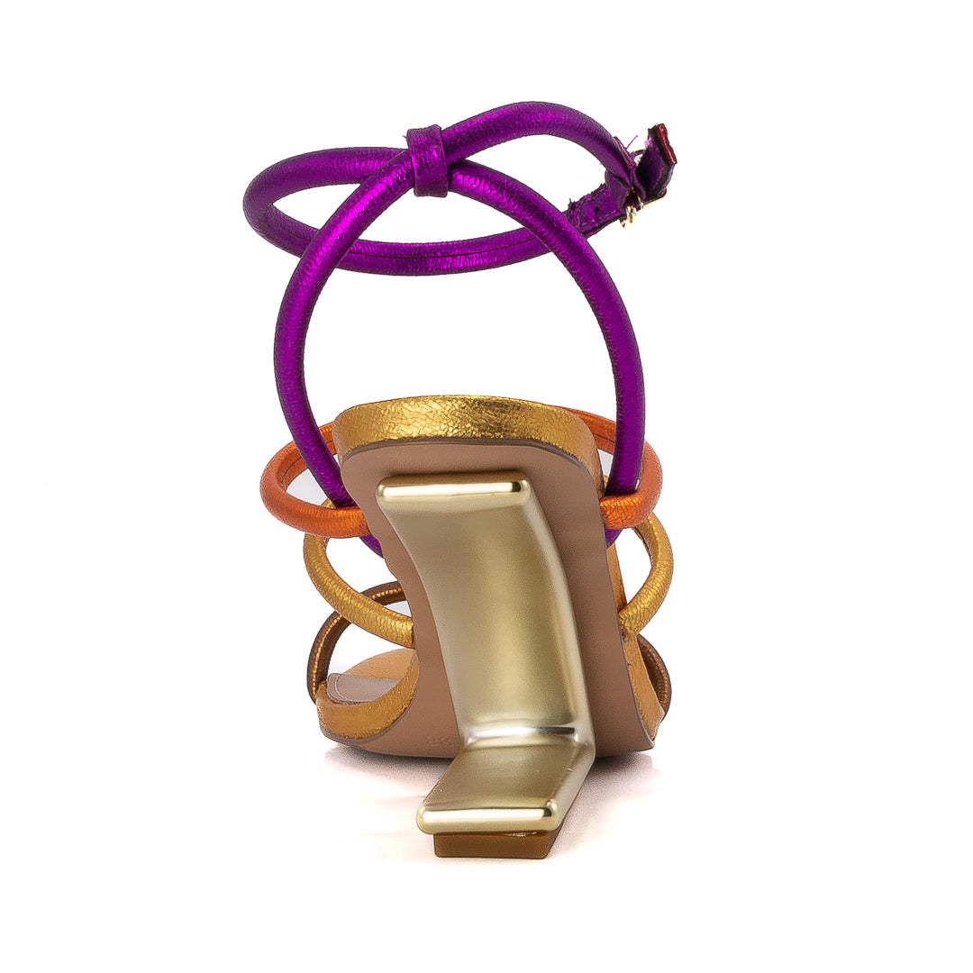 Strappy high heel sandal with multi color design and soft insole. Designed in Greece.