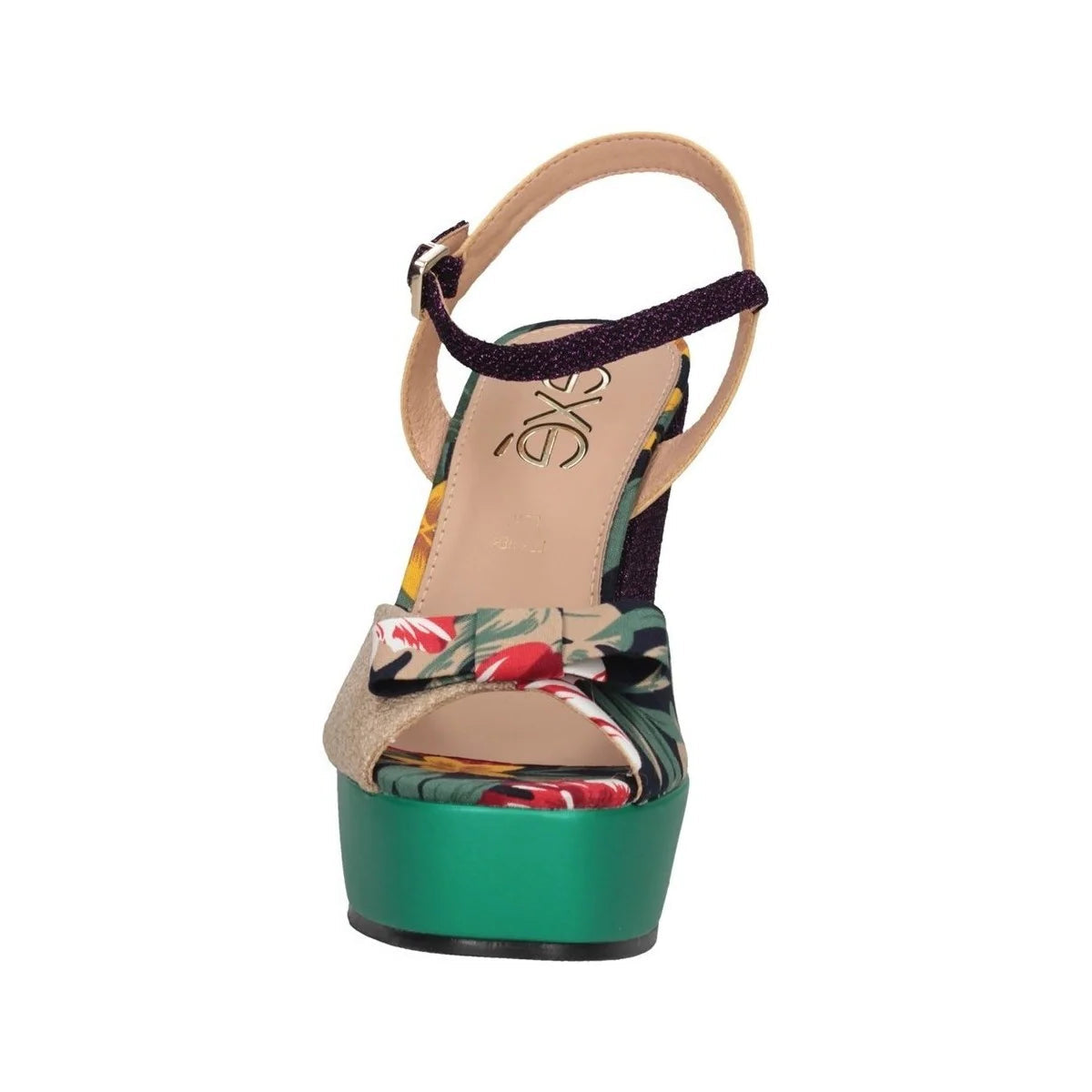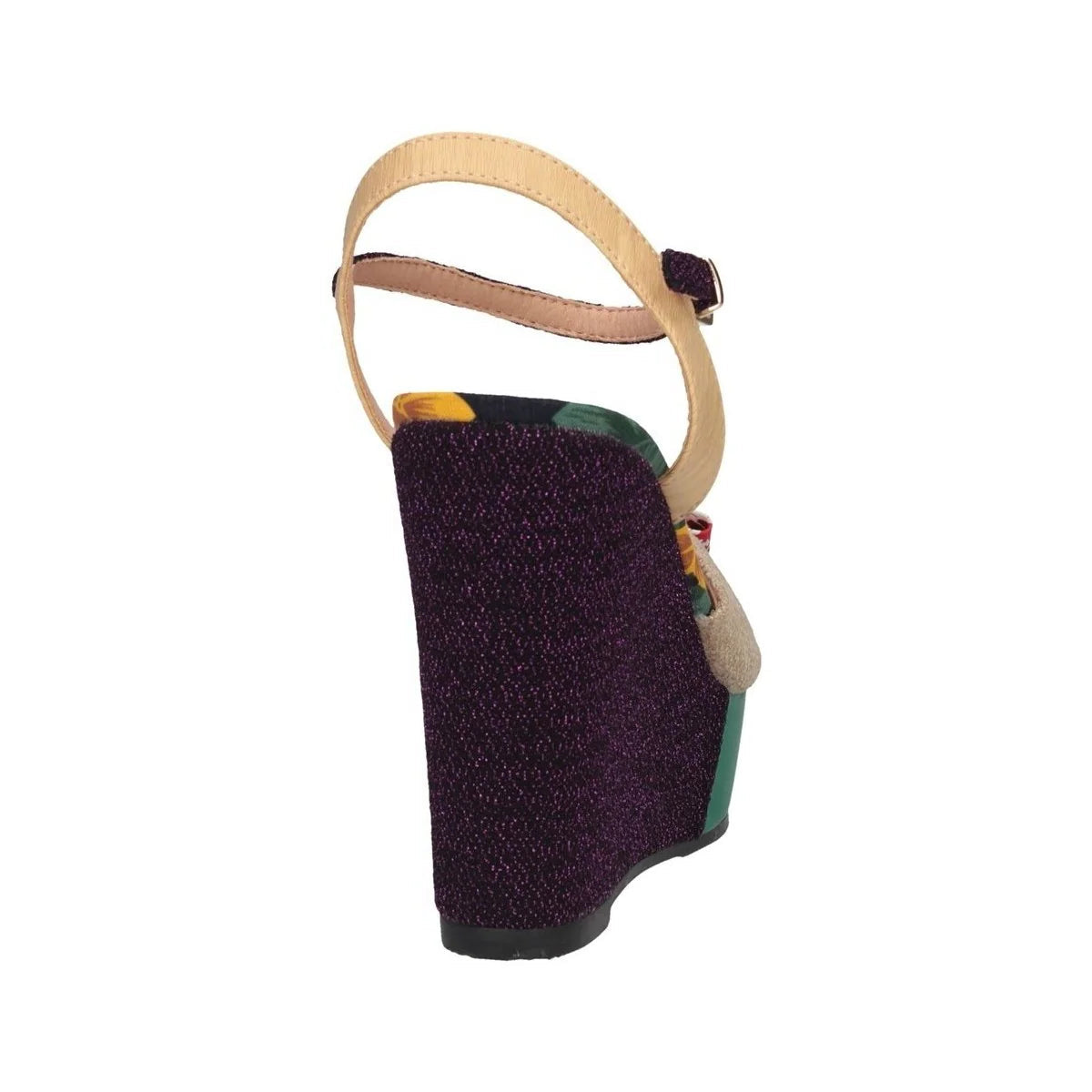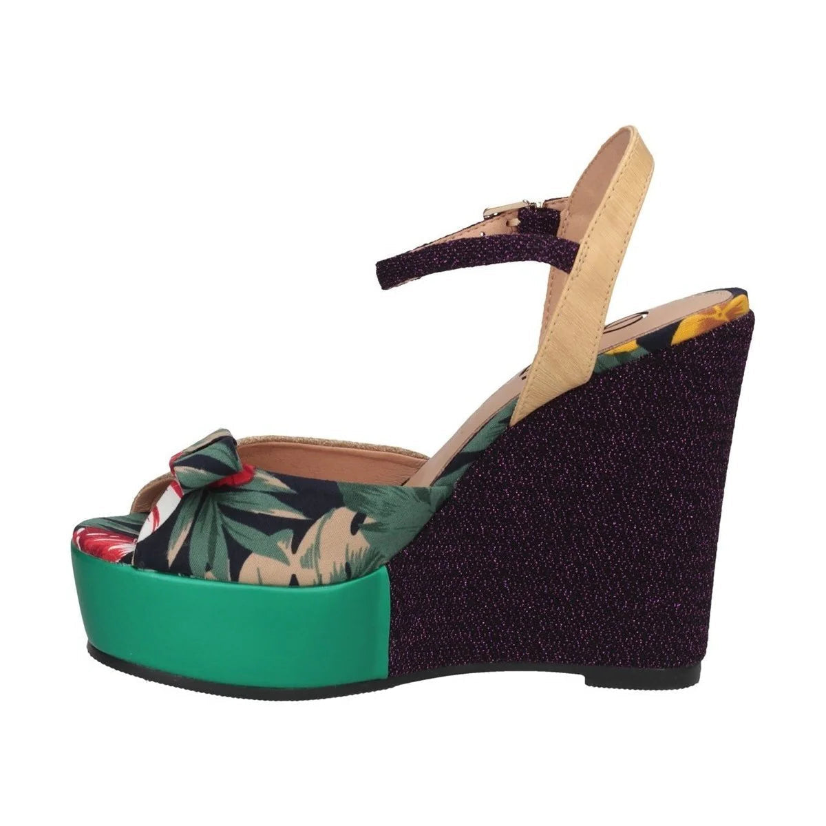Floral print wedge attached to the ankle with buckle closure and front detail on the instep of a floral bow. Made with textile materials and leather sole. Alutra of the wedge of 13 cm and platform of 5 cm.
