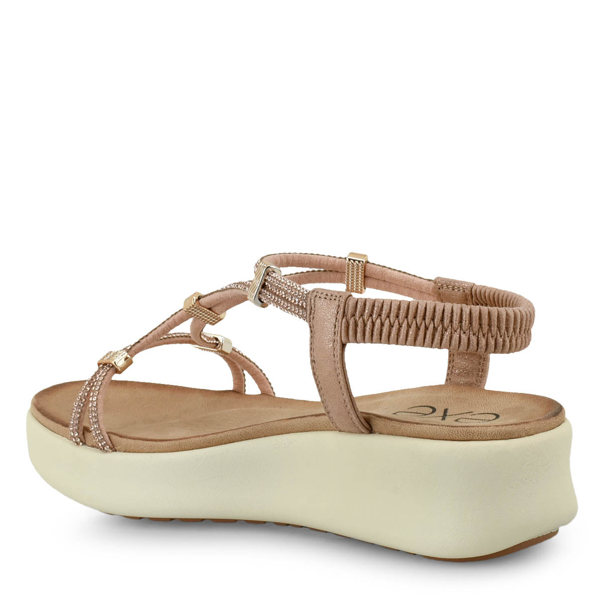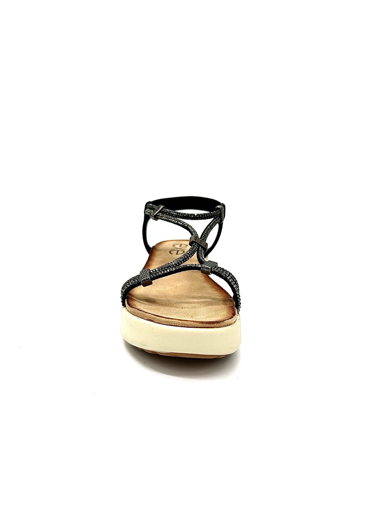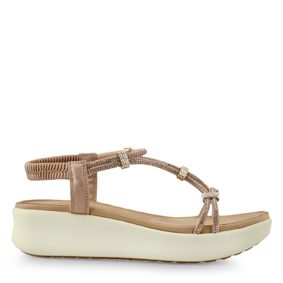 Wedge flat sparkle sandal with soft insole. Designed in Greece.