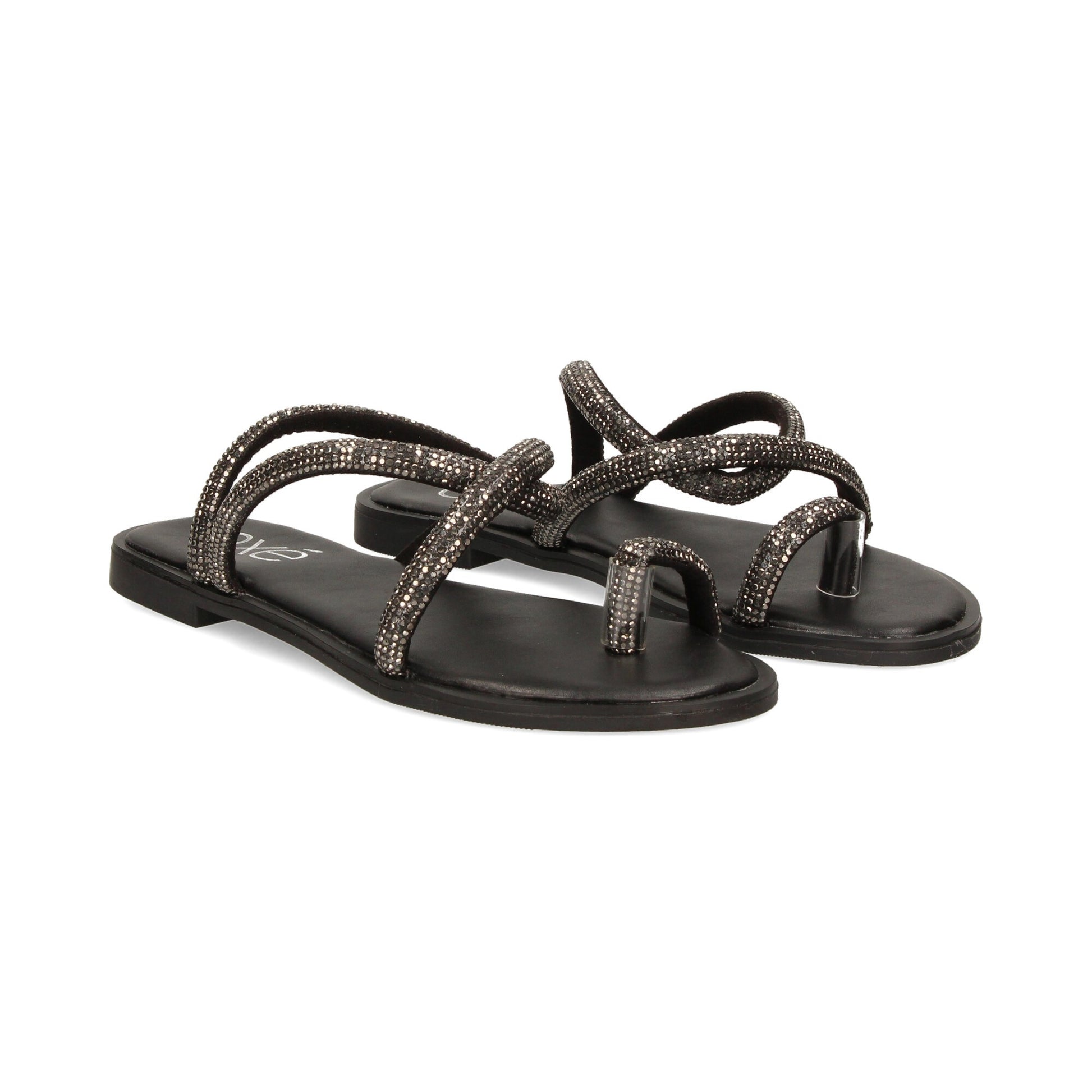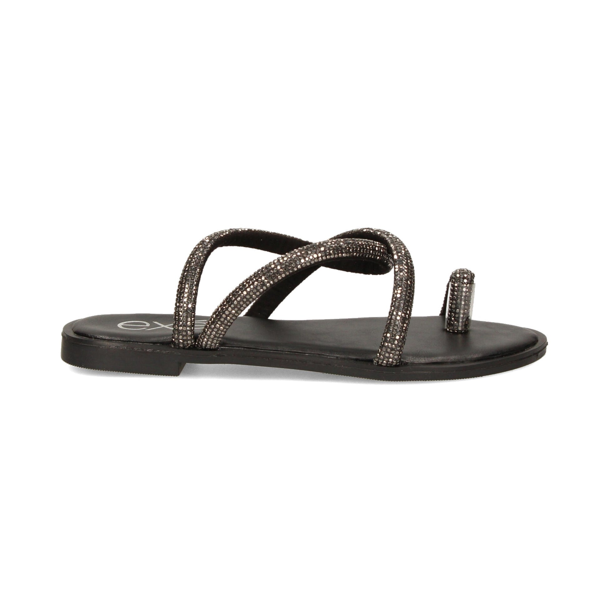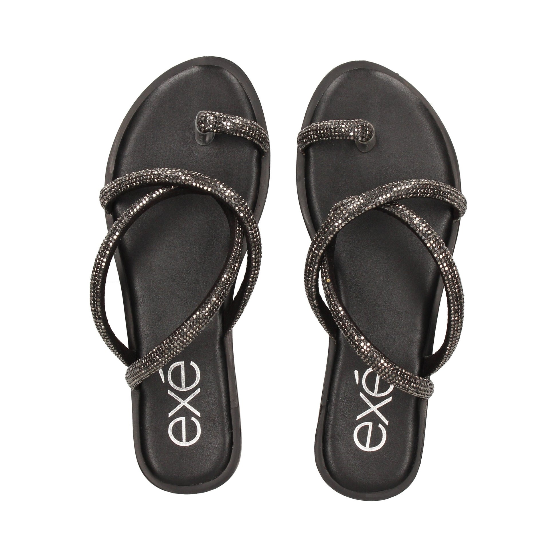 Flat rose gold sandal. Its upper, insole and sole are made of synthetic material.