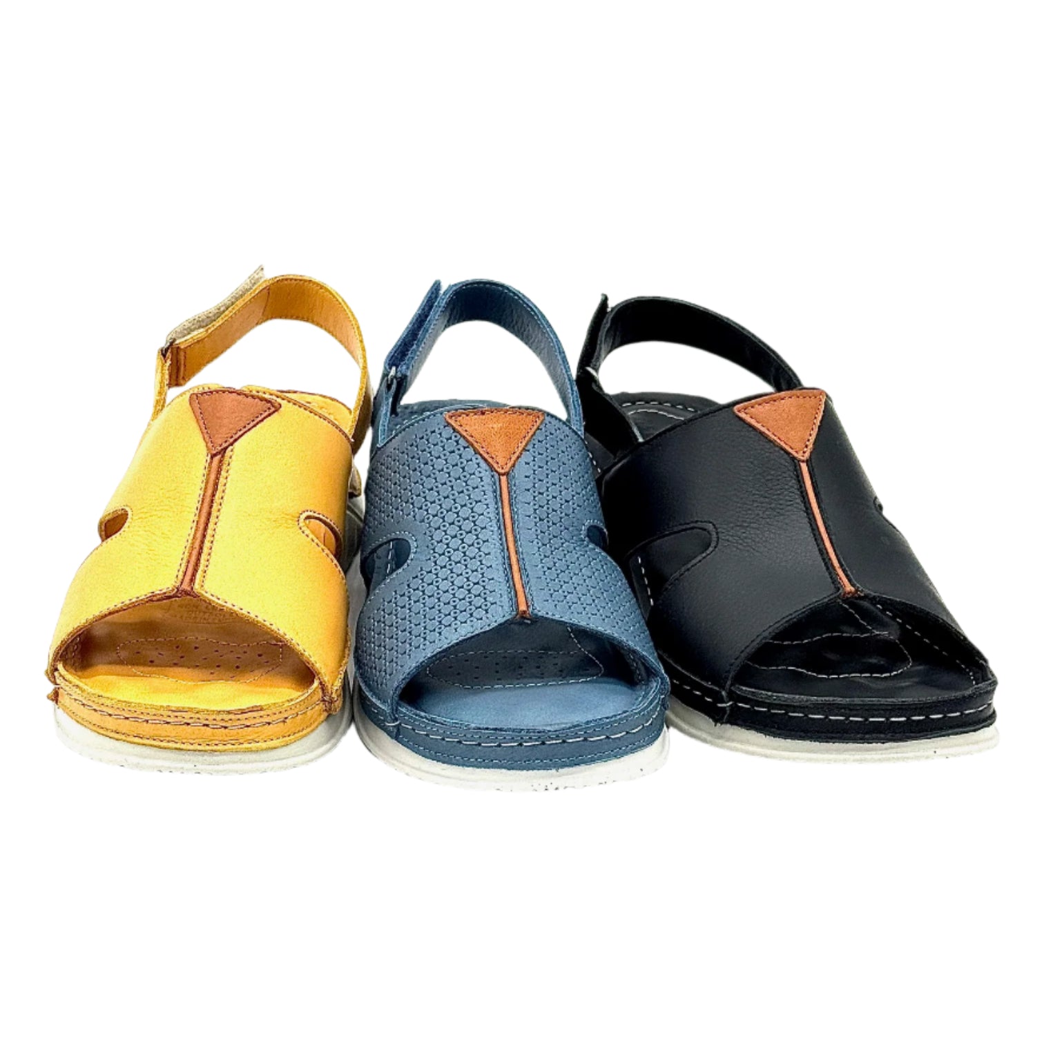 Comfort sandal with Velcro strap and padded cushion.