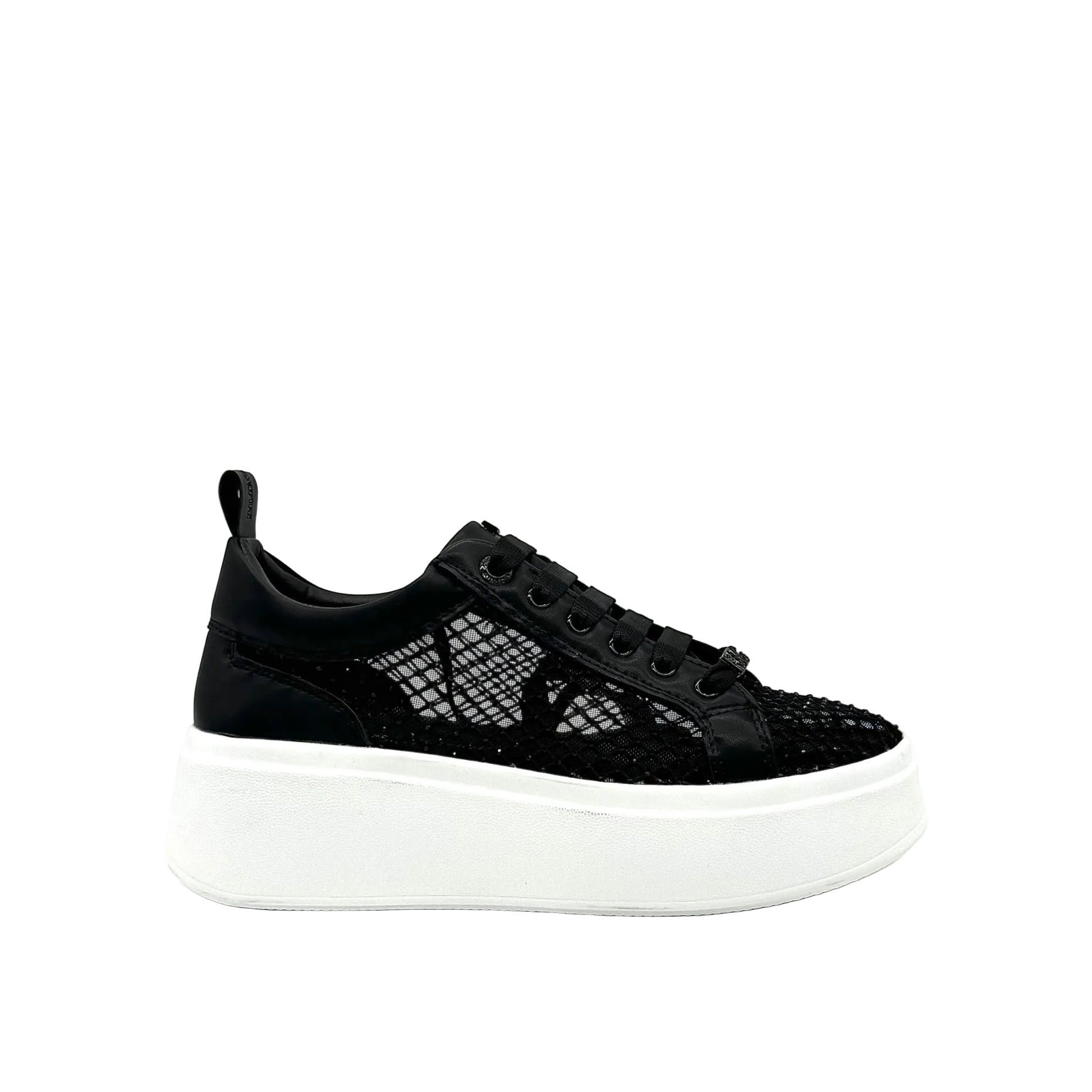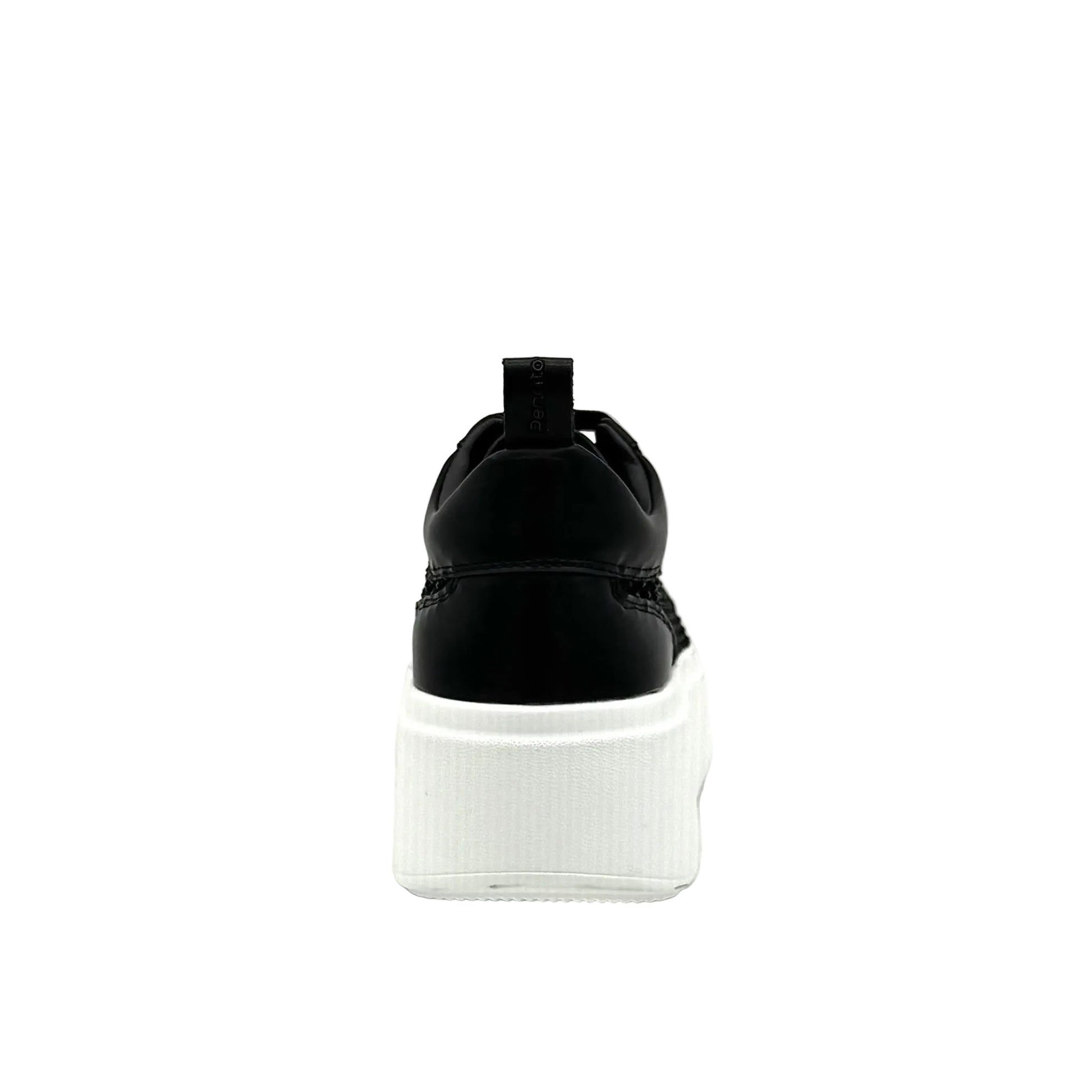 Designed in Greece, this platform sneaker combines woven texture with subtle stone accents for a bold yet refined look. The open woven panels layered over a mesh base add visual interest, while the cushioned insole and solid platform sole keep it comfortable for everyday wear.